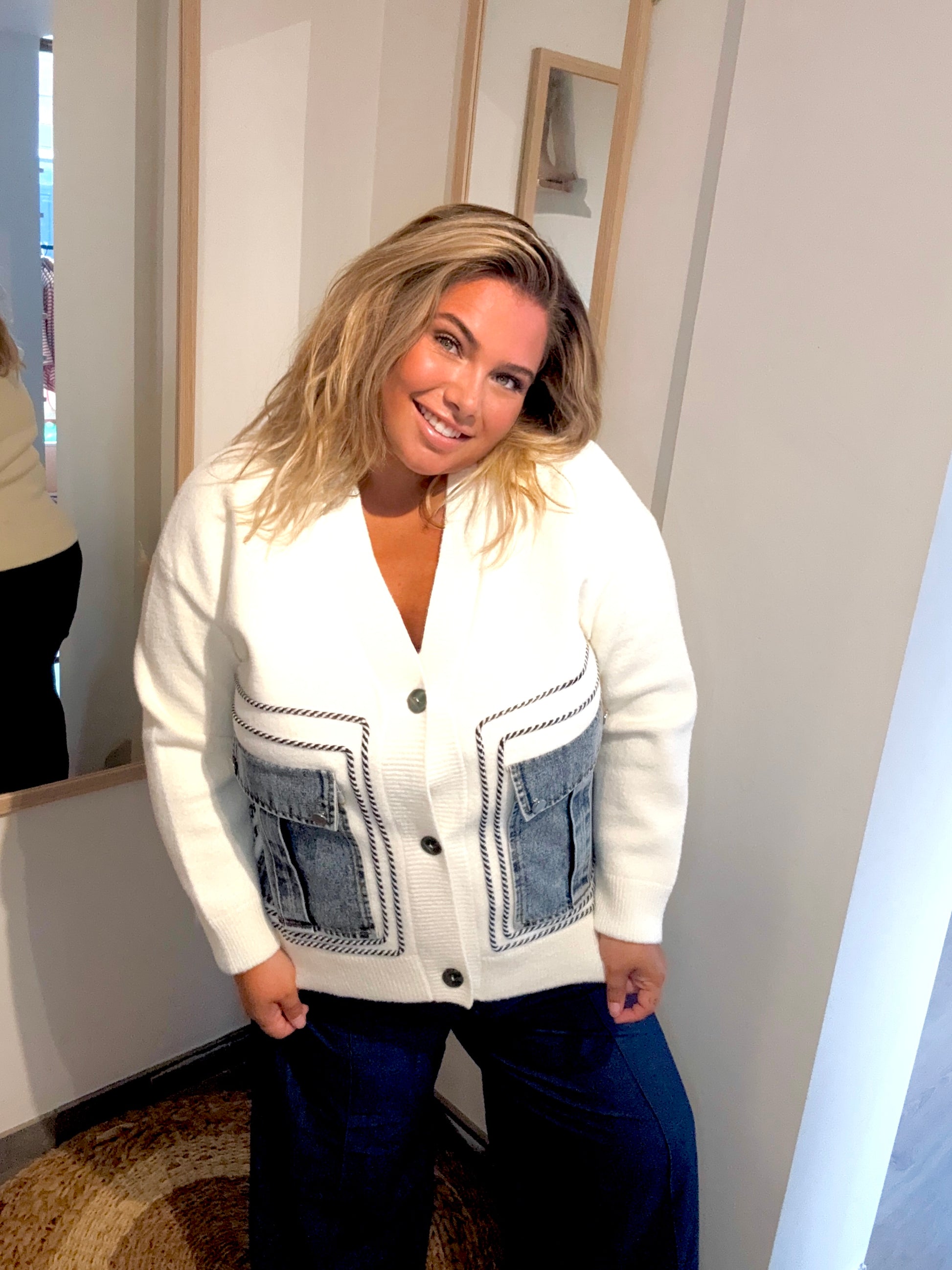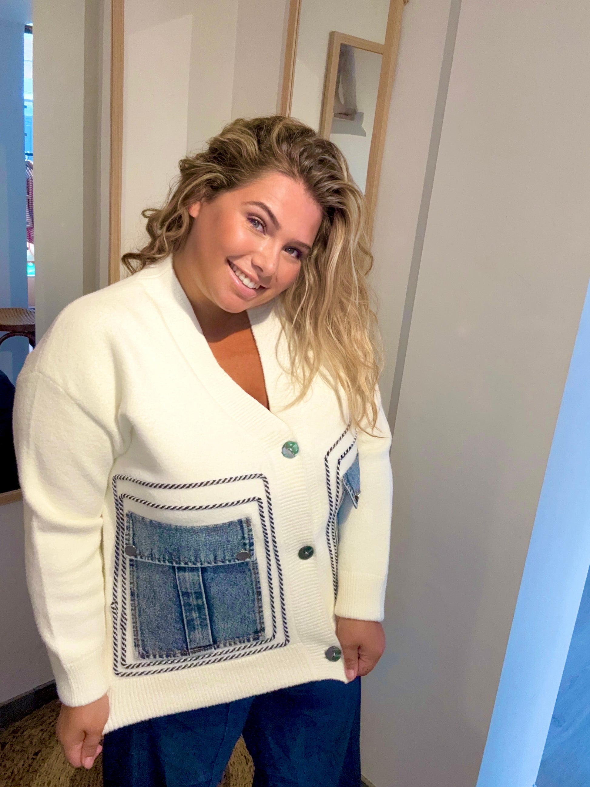 - Poches plaquées en jean pour un contraste moderne