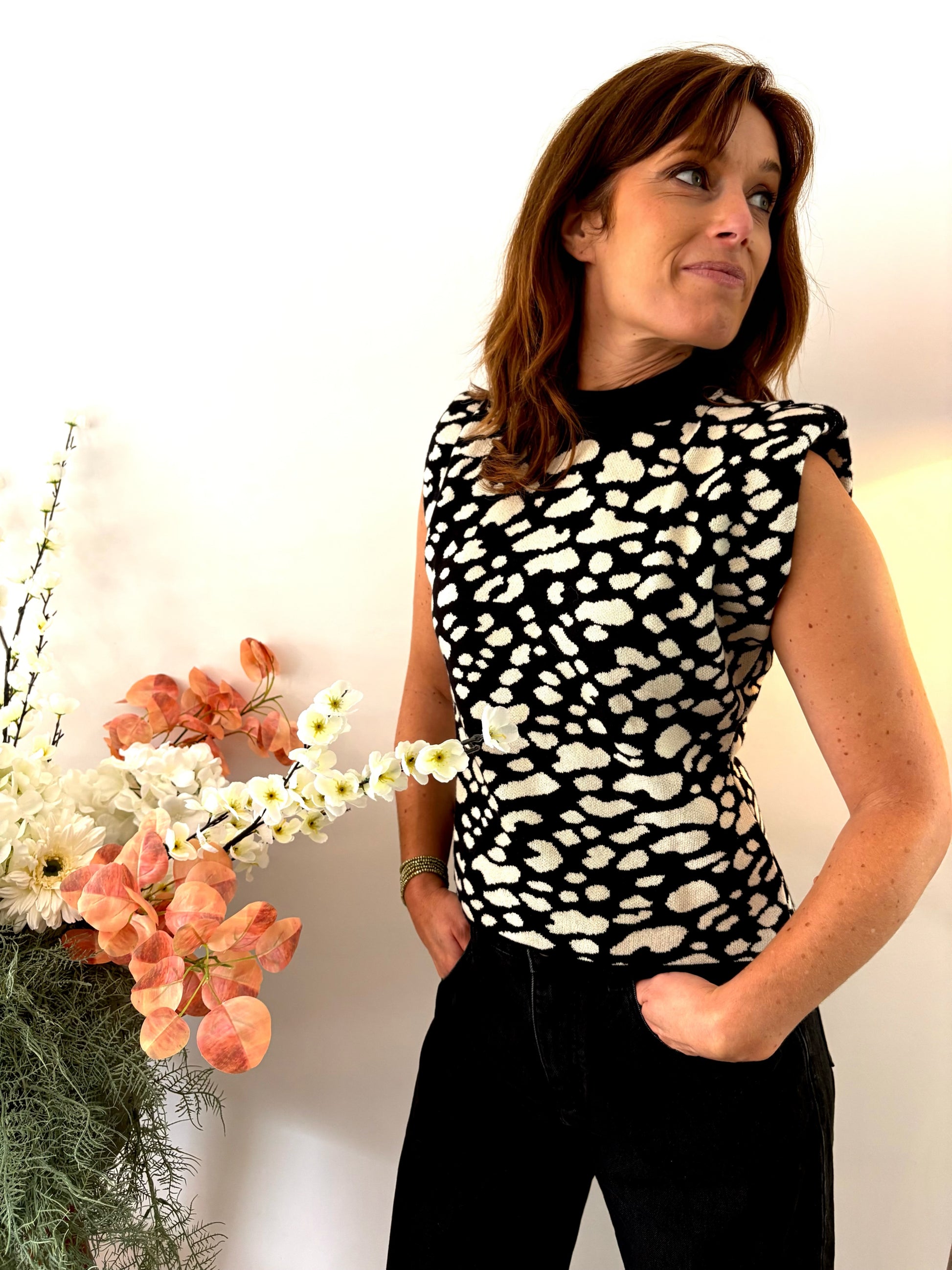 - Motif : Imprimé graphique noir et blanc