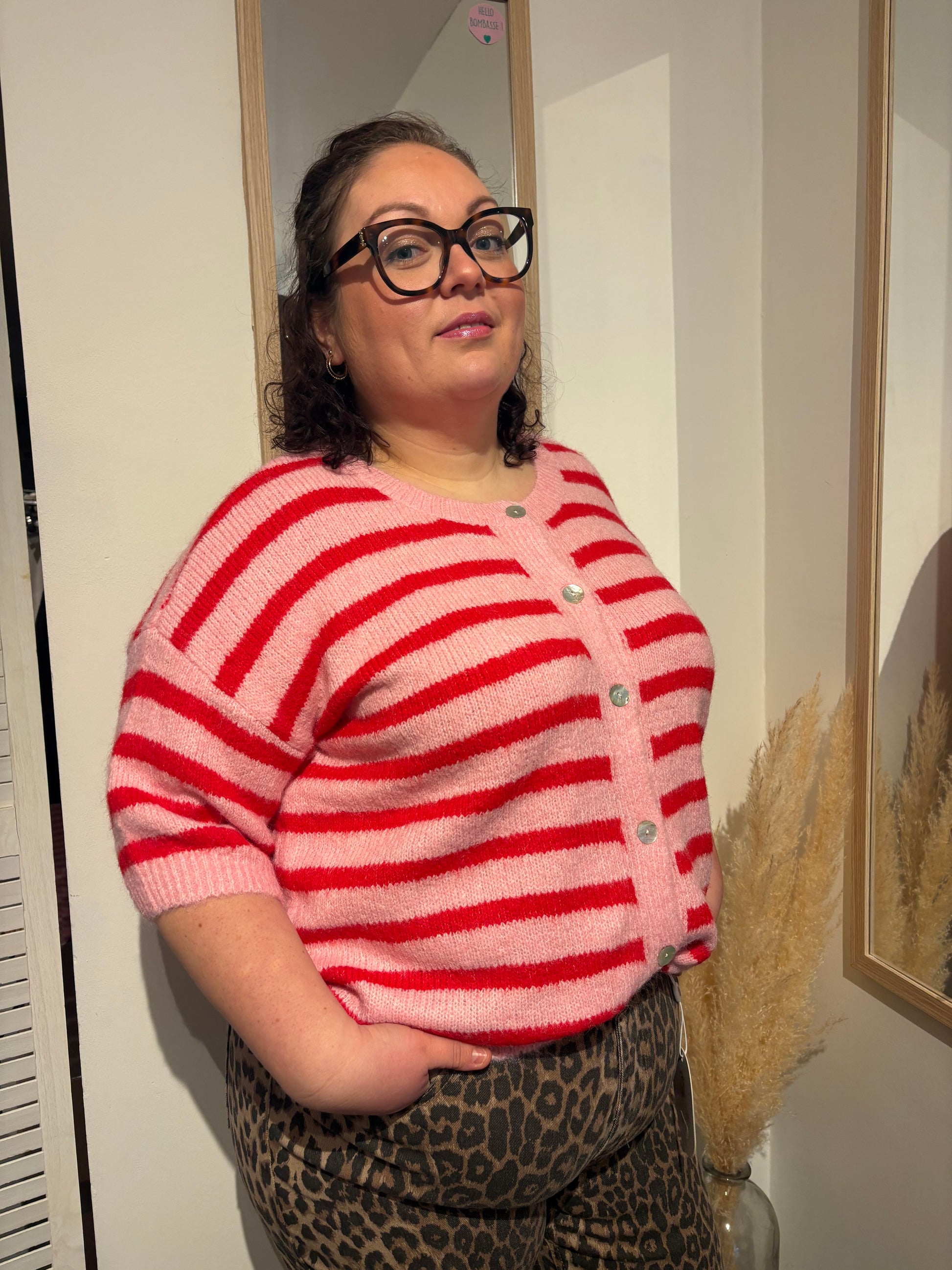 Osez la couleur avec ce gilet rayé rose et rouge 💗❤️