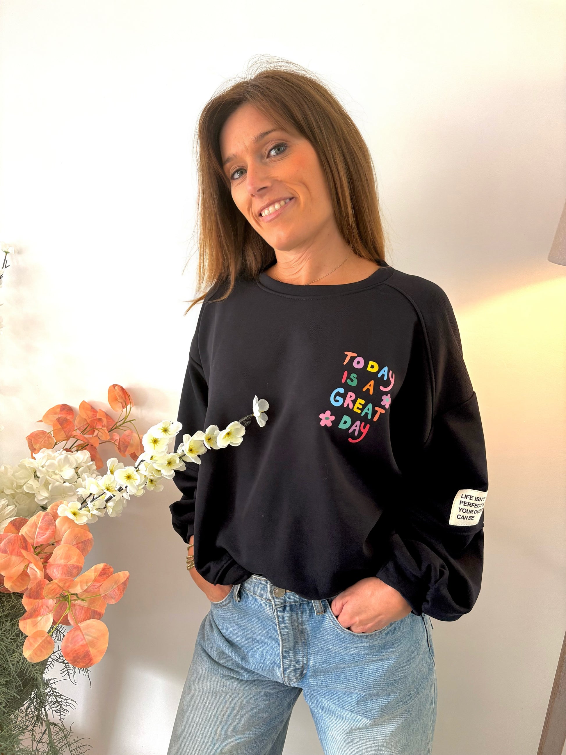 - Détails : Imprimé coloré "TODAY IS A